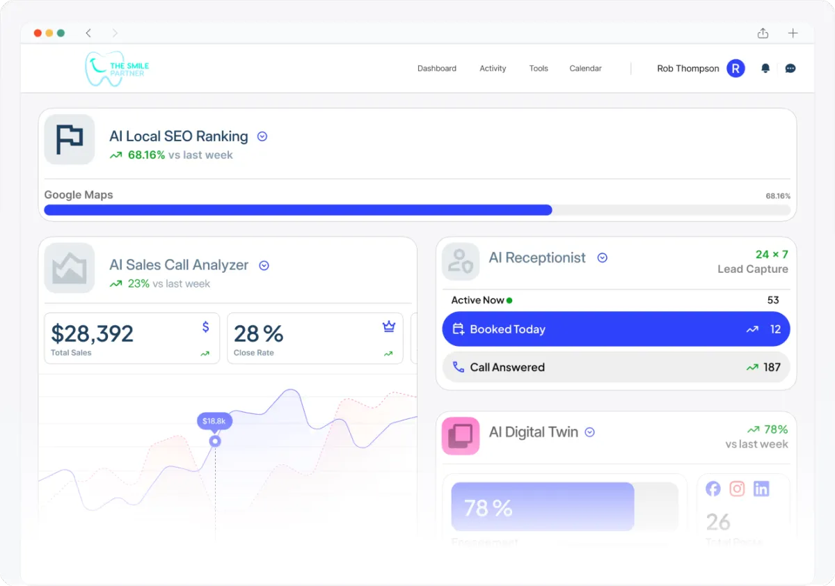 From getting found to closing the sale, our AI-powered solutions work together to help you dominate your local market.